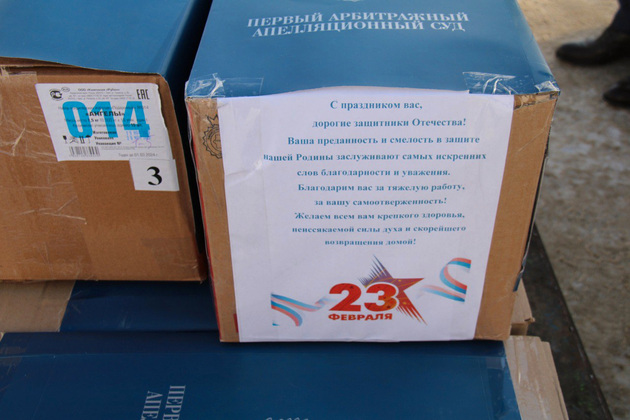 Посылки будут доставлены ближайшим гумконвоем правительства Владимирской области, сообщила пресс-служба “белого дома”, подчеркнув, что это далеко не первая отправка груза от арбитражного суда. Военнослужащим сотрудники ведомства уже направляли приборы ночного видения, радиостанции и квадрокоптеры.