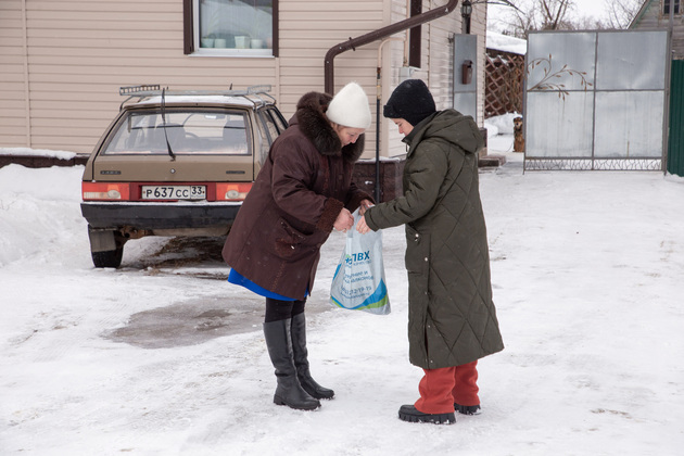 Когда внук показал эту визитку бабушке, Ирина Михайловна воскликнула: «Это то, что я искала!» Так и началась ее гуманитарная миссия во имя победы, добра и справедливости. Созвонились с тем самым офицером полиции, всё обсудили. Так и так: бойцам ВДВ нужны продукты питания, теплая одежда. Староста кинула клич по деревне - жители тут же отозвались.