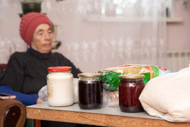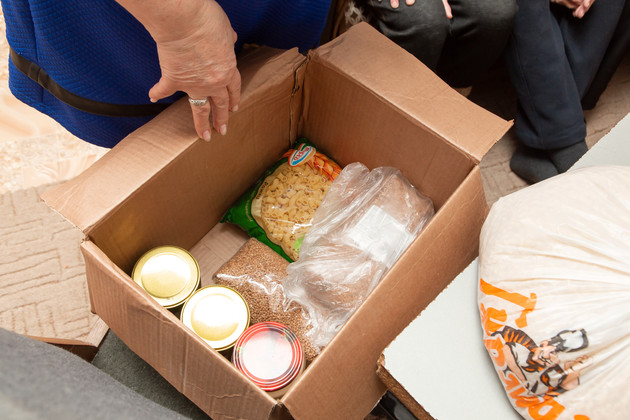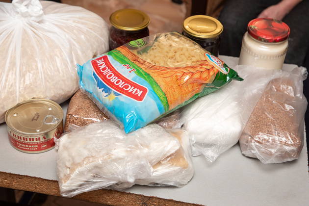 - Вот как раз сейчас собираем, - достает пакет с содержимым Ирина Михайловна. - Тут макароны, гречка, рис, топленое сало, домашнее варенье, мясные консервы.