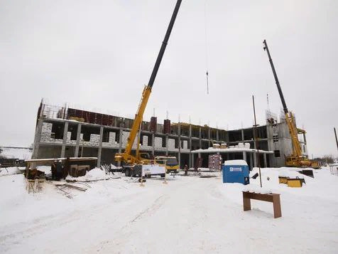 Сейчас строители заняты бетонными конструкциями на 3 этаже, перекрытиями между 2 и 3 этажами и стенами на 2-м. Также проложены наружные сети водоотведения и водоснабжения. Идёт прокладка теплосетей.