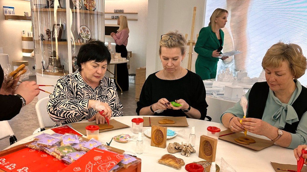 Гости также смогли принять участие в викторине на знание народно-художественных промыслов, поиграть в бизнес-игры, создать уникальные украшения из натуральных камней и продегустировать фермерскую продукцию.