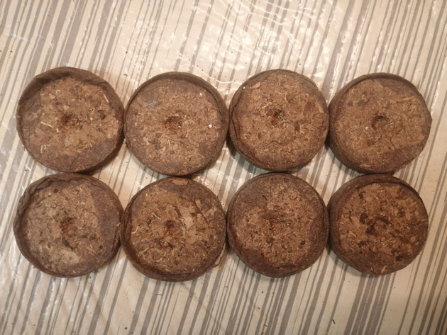Что касается углубления в центре таблетки, то оно сделано для крупных семян. После того как таблетки напитались водой, аккуратно выравниваем и уплотняем их верхнюю часть.
