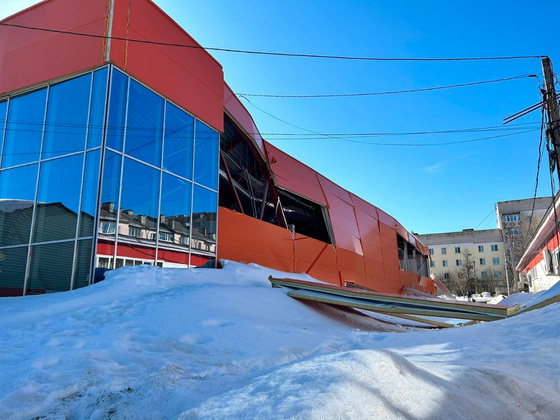 Сегодня, 22 марта, произошло частичное обрушение здания из-за деформации алюминиевых конструкций. Также у здания отвалились стеновые панели.