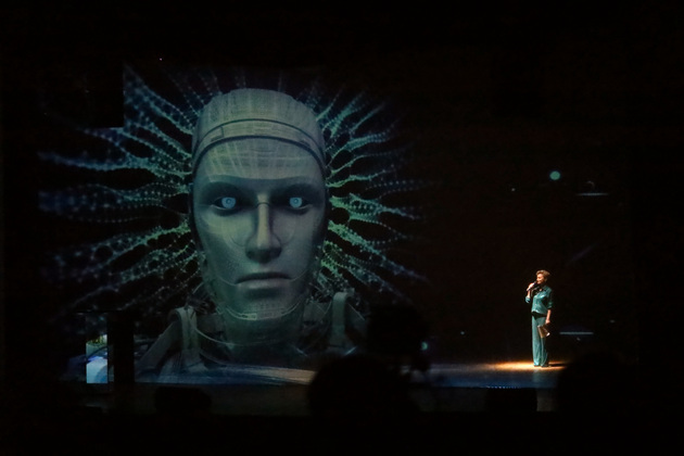 Начало торжества в этот раз было необычным: на сцене появился аватар искусственного интеллекта.