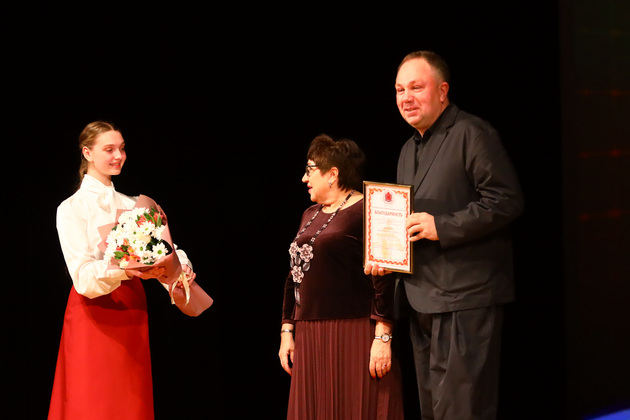 – У нас у каждого сидящего в зале, живущего в нашей необыкновенной стране, есть культурный ген. Возможно, у кого-то он спит до какого-то времени, а потом включается и таланты раскрываются у каждого человека, особенно у детей. Уважаемые работники культуры, любимые, родные, очень рада вас приветствовать на этой торжественной встрече! – обратилась к публике Хохлова. – Хочу сказать вам всем огромное спасибо! Конечно, это мероприятие проходит в непростое время, тяжело в связи со скорбным событием. Наши земляки там оказались в числе погибших. Скорбь остается в наших сердцах. Мы желаем выздоровления всем, кто пострадал. А нам с вами сил пережить это.