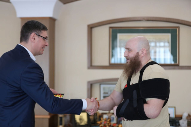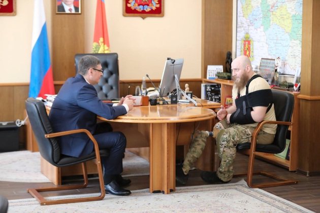 Губернатор Владимирской области Александр Авдеев и вице-спикер Законодательного Собрания Дмитрий Рожков встретились с легендарным участником СВО из Собинского района – Русланом Захаровым.