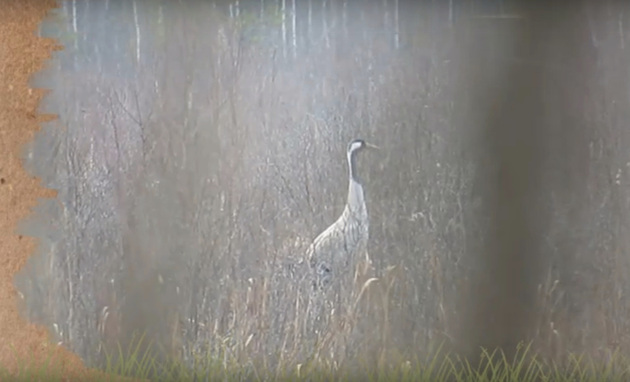 Этого серого журавля сняли на видео на Урсовом болоте в Камешковском районе. Это крупный лесоболотный массив общей площадью около 4 тысяч га, который сегодня представляет собой комплекс зарастающих торфоразработок. Урсово болото выступает ключевой орнитологической территорией, где нашли себе дом множество видов птиц, в том числе и журавли.