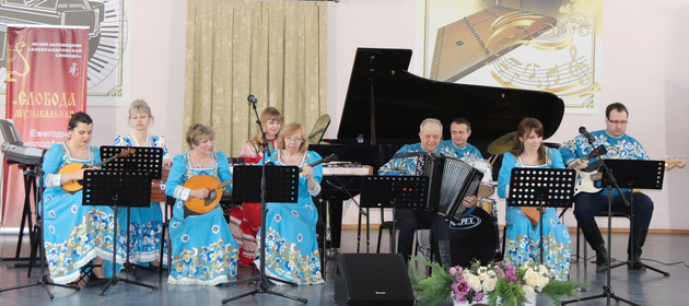 А открылся он выступлением известного местного коллектива – Народного ансамбля народных инструментов «Былина», в котором тоже прослеживается семейственность. Его основатель и бессменный художественный руководитель Валерий Владимирович Галкин привил любовь к музыке сыну Сергею, который теперь не только выступает вместе с отцом, но и сам преподает в школе искусств.