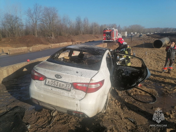 ГУ МЧС России по Владимирской области сообщает об утреннем инциденте на расширяемом участке трассы. В семь утра отсюда спасатели получили сигнал о возгорании автомобиля.