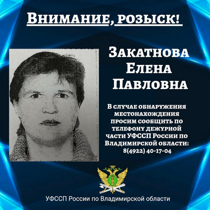 Тех, кто располагает какой-либо информацией о месте нахождения разыскиваемого лица, просят позвонить по следующим телефонам: 8 (4922) 40-17-04 (дежурная часть УФССП России по Владимирской области), 8 (4922) 40-17-53 (начальник ОСП Ленинского района), 8 (4922) 40-17-54 (ведущий судебный пристав-исполнитель ОСП Ленинского района).