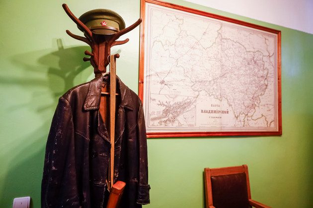 Первые шаги послереволюционных органов безопасности передает реконструированная обстановка кабинета сотрудника ГубЧК. Здесь стол под зеленым сукном, на вешалке - потертая кожанка и кобура с «Маузером». На стенах – фотографии первых руководителей ЧК. Служить туда приходили и люди с царскими орденами. Специалисты дореволюционных правоохранительных структур помогали наладить работу ЧК.