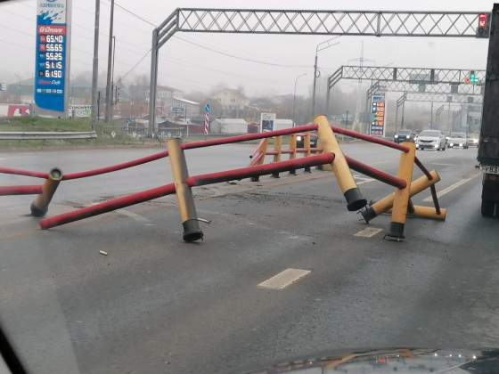 Сотрудников ДПС автолюбитель решил не дожидаться, скрывшись с места происшествия. Дорожные службы решают вопрос восстановления металлической конструкции, а сотрудники ГИБДД выясняют личность горе-гонщика.