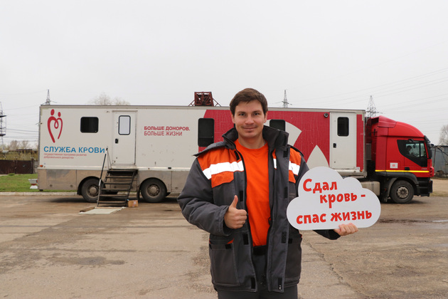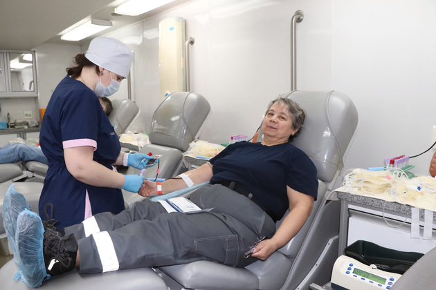На территорию предприятия приехала мобильная станция переливания крови. Сначала у участников акции взяли экспресс-анализ крови, определили ее группу, резус фактор и протестировали на соответствие всем необходимым параметрам: уровень гемоглобина и количество лейкоцитов, а также проверили противопоказаний к донации.