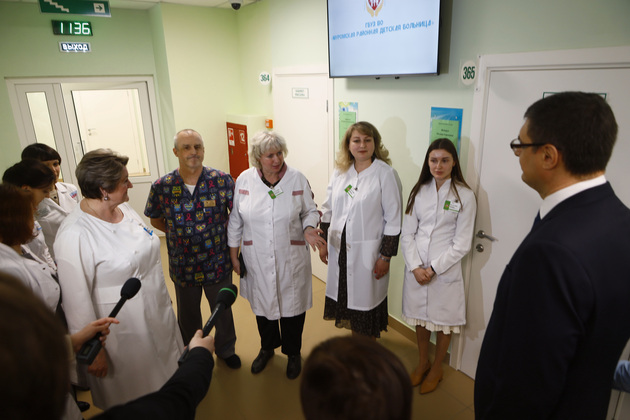 В новом трехэтажном корпусе – несколько отделений, в том числе консультативно-диагностическое, включающее 32 кабинета для участковых педиатров и врачей по специальностям. У врачей теперь в распоряжении светлые, уютные кабинеты для обследования и лечения маленьких пациентов, а еще появились индивидуальные планшеты, что очень помогает в работе.