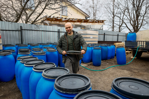 Поселок Майский расположен в 11 километрах к северо-востоку от Александрова, недалеко от границы с Ярославской областью. Населенный пункт окружен полями и сосновым бором. На территории частного дома Сергея находится цех, где в контейнере-холодильнике хранятся березовый сок и продукты его переработки - квас и сбитень. Но дегустация будет позже. Сначала предстоит добраться до «березовой плантации», где идет заготовка сока.