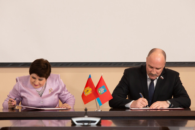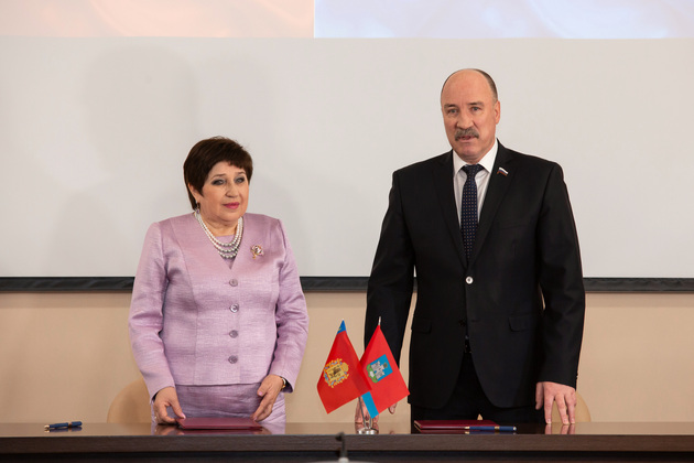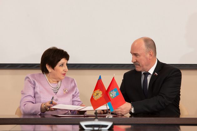 В рамках празднования своего юбилея Законодательное Собрание подписало также два важных соглашения о сотрудничестве: с Орловским областным Советом народных депутатов и Институтом государства и права РАН. Подпись на документе со стороны орловских законодателей поставил председатель областного парламента Леонид Музалевский. Утвердил соглашение со стороны ИГП РАН директор института Александр Савенков.