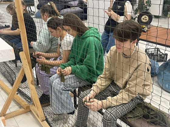 А на базе Судогодского комплексного центра открыта детская добровольческая студия «Мы с Вами!». Её участники занимаются плетением маскировочных сетей. Техника несложная, но трудоёмкая. Также сети плетут и в Краснооктябрьском ДК Ковровского района.