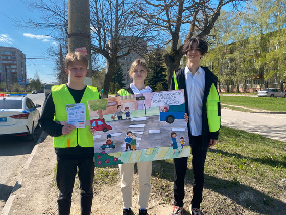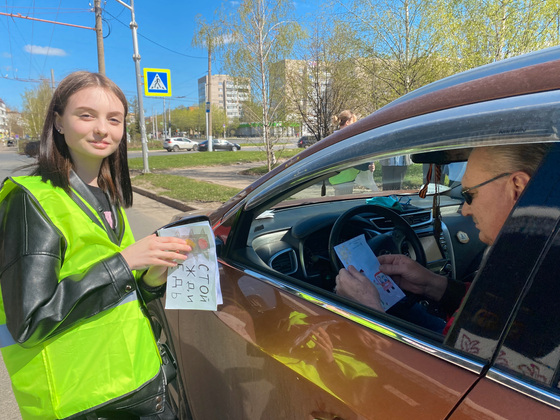 Школьники нарисовали большой пропагандистский плакат о безопасности дорожного и памятки. Пешеходам и водителям напомнили, что залог безопасности на дороге - это соблюдение Правил дорожного движения, ответственность и внимательность. Кроме памяток раздавали еще брелки-фликеры для детей.