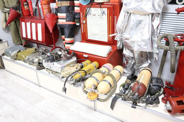 В экспозиции можно увидеть модель конно-бочечного обоза, который до появления автомобилей был основным арсеналом профессиональной пожарной охраны, картины опустошительных пожаров, фото первого советского грузовика АМО-Ф-15, советское оборудование испытательной пожарной лаборатории, современную технику, ознакомиться с занимательной хронологией становления пожарной службы.