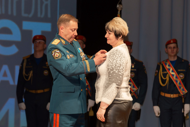 Начальник Главного управления МЧС России по Владимирской области генерал-майор внутренней службы Алексей Купин вручил директору магазина из поселка Добрятино Гусь-Хрустального района Светлане Желтовой медаль «За спасение на пожаре».