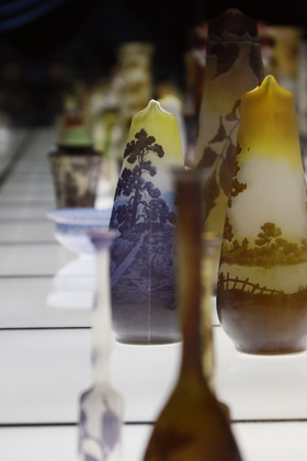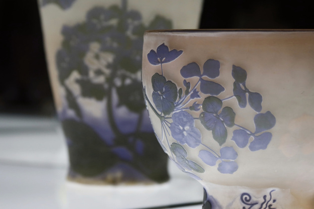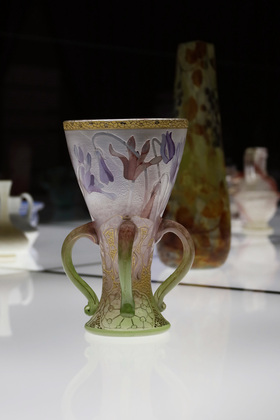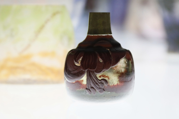 Одно из старинных изделий – под номером один в экспозиции, и это великолепный флакон. На нем изображены лилии или, как их еще называли, – мартагоны. Этот экспонат связывают с историей дружбы Галле и известного поэта Робера де Монтескью. Именно последний привил другу-художнику любовь к восточной культуре, так как привозил в подарок гравюры японских художников.