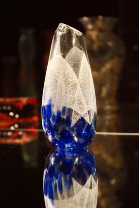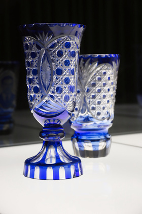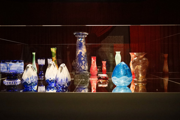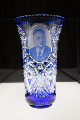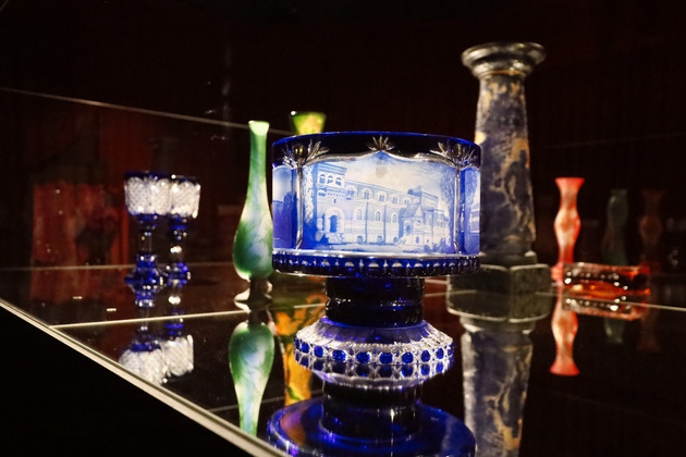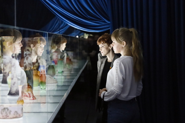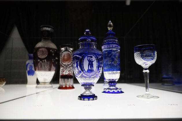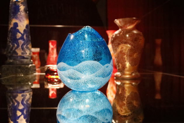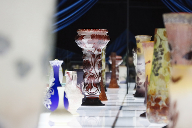 На выставке в «Палатах» можно посмотреть на работы из стекла разных периодов истории, включая СССР и современность. Кстати, в советский период технология была несколько упрощена: у изделий нет того самого многоцветия и на них меньше рельефов.