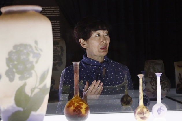 – Технология, представленная здесь, принесла ту славу, которая осталась в истории. Эти изделия выполнены в технике многослойного стекла и глубокого травления. Сейчас специалисты говорят о том, что есть у Галле изделия, на которых использовано более 100 различных операций и химических компонентов. В настоящее время специалисты, которые занимаются технологией стекла, не могут раскрыть его секрет, – отметила Надежда Пак.