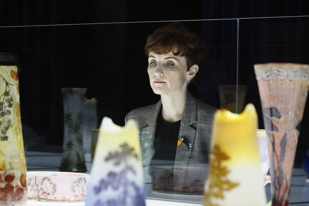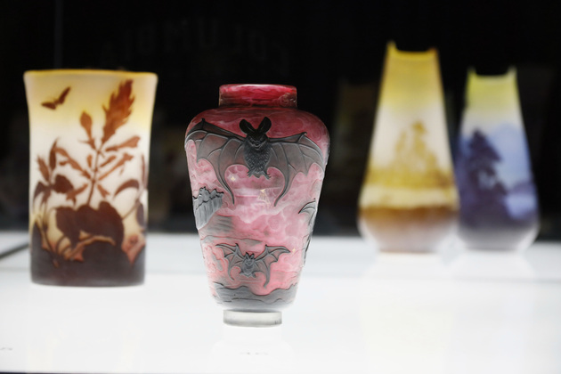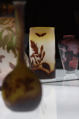 Галле отрицал человеческую фигуру в своих изделиях, констатирует ведущий специалист по экспозиционной и выставочной деятельности музея-заповедника Надежда Пак. Она начинает экскурсию с небольшого рассказа про ранние работы, выполненные в художественной мастерской Галле (1890-е годы), которая располагалась в городе Нанси во Франции.