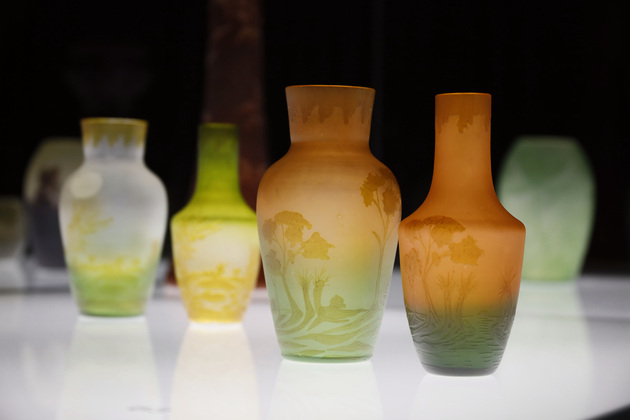 На выставке можно детально рассмотреть более 150 экспонатов: авторские работы мастера, его учеников и последователей, произведения «в стиле Эмиля Галле», изготовленные на Императорском стеклянном заводе и Гусевской хрустальной фабрике, а также «советское Галле» – изделия 1930–1950-х годов Гусевского, Дятьковского хрустальных заводов, стекольного завода «Красный гигант».