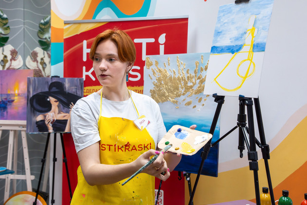 «Меня зацепил сам проект, что можно за один мастер-класс нарисовать картину. Сначала очень сильно переживала. Мне казалось, что сюда ходят только художники. Когда пришла на пробный мастер-класс, это было еще осенью 2023 года, я даже не ожидала такого результата. Первой работой стал аист. Кстати, одна из таких простых картин, пейзажная больше. Ее рисовать легче, чем сегодняшнюю. Самая любимая работа? Это женщина в шляпе с бокалом. Была очень сложная в построении. Как раз запомнилась больше всего из-за скрупулезности в деталях», – рассказала Дарья.