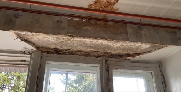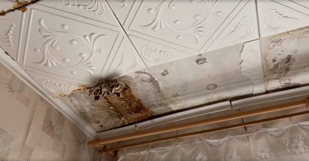 Здесь, по уверениям жильцов, крыша течет уже 5 лет. Уже в двух квартирах №№ 25 и 26 на потолке выросли грибы, отметили общественники.