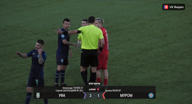 После перерыва «Муром» вышел, заменив трех игроков и явно готовясь отыгрываться. Но в начале второго тайма произошел драматичный случай: защитник «Мурома» Сергей Запалацкий под натиском «Уфы», прерывая продольную передачу, срезал мяч в собственные ворота. Автогол! И «Уфа» стала выигрывать со счетом 2:0.