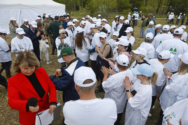 А министр лесного хозяйства Евгений Малышев больше рассказал о том значении лесовосстановительной работы и о прогалине в лесу, где проходила акция.