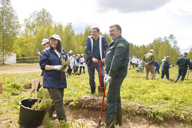 Вместе с Ольгой Хохловой в паре работал вице-спикер ЗС Дмитрий Рожков, а вместе с вице-губернатором Александром Максимовым трудилась генеральный директор ЗАО «Муром» Ольга Тихонова. Эта компания является арендатором лесного участка, где проходила акция, и ее ключевым организатором. Ведь каждый арендатор лесных угодий должен их восстанавливать.