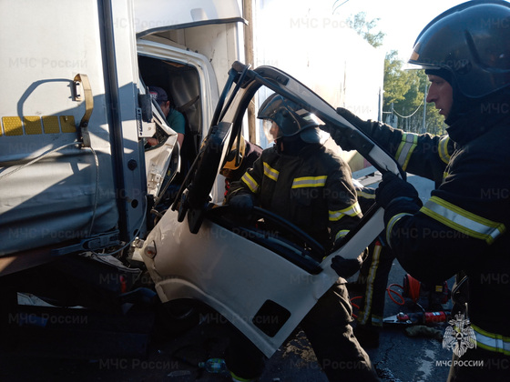 В аварии пострадали два автомобиля, однако помощь специалистов понадобилась водителю большегруза, которого зажало в кабинете. Соотрудники МЧС деблокировали его и передали медикам.