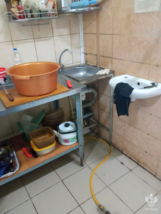 Само помещение кухни вызвало также массу претензий у проверяющих. Здесь почему-то стояли мягкая мебель и были посторонние предметы. Ведра, тряпки и швабры стояли тут же.