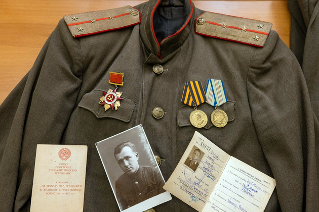 Реликвии передала дочь фронтовика. Среди них – военная форма, награды, документы и фотографии военных лет.