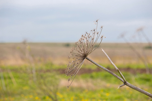 Поле в Суздальском районе между деревней Губачево и селом Цибеево принадлежало обанкротившемуся племзаводу «Стародворский» и не обрабатывалось около 8 лет, зарастая в том числе борщевиком. Сейчас здесь торчат засохшие стебли сорняка с прошлого года, а под ногами уже вовсю поднимается его молодая поросль. Такие заброшенные земли борщевик особенно любит заполонять!
