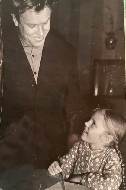 Мы с сестрой с самого маленького возраста понимали, что наш папа - писатель. Для нас всегда существовало правило: когда папа дома работает, мы «не шевелились». Всегда была тишина в квартире. Это правило действовало и в этом доме. Мы гордились папой. Он часто брал нас с собой на литературные вечера. Когда отец читал стихи, зал вставал и не хотел его отпускать.