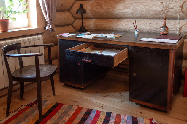 Всё здесь дышит хозяином и помнит его мастеровитые руки. Каменный низ, деревянный верх, наличники, резной карниз. Теперь здесь постоянно живет старшая дочь писателя. Елена Владимировна переехала сюда из столицы в 2012 году. Она удивительно похожа на своего отца - волосы пшеничного цвета, бездонные васильковые глаза, узнаваемые славянские черты...