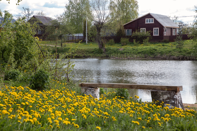 Алепино встретило нас утренней прохладой. Ночью шел дождь, и умытые трава и одуванчики желто-изумрудных тонов радуют глаз в лучах майского солнца. В селе сохранился дом писателя, который Владимир Алексеевич восстанавливал своими силами. По деревенским меркам семья Солоухиных считалась зажиточной, и в годы коллективизации часть дома отошла под нужды государства. Много лет спустя полуразрушенный дом вернули его владельцам.