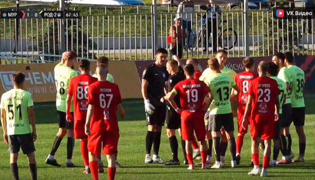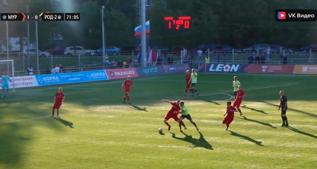 На 67-й минуте повздорили вратарь «Родины-2» Сергей Айдаров и опытный форвард «Мурома» Дмитрий Сысуев. И обоих судья тут же удалил.