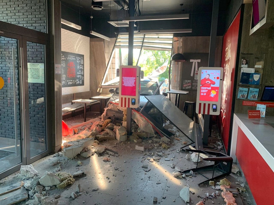Утро 29 мая во владимирском ресторане быстрого питания KFC на улице Благонравова, 2, началось не с кофе. В 6:45 стену их здания со стороны окна выдачи заказов протаранил легковой автомобиль "Рено Логан". За рулем был мужчина 1976 года рождения, сообщили в ОГИБДД УМВД России по городу Владимиру.