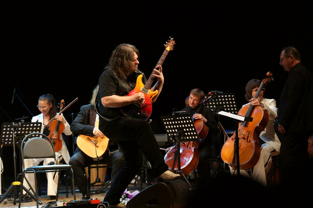 Уже в начале потряс своим мастерством открывший концерт молодой китайский гитарист-виртуоз, победитель многочисленных престижных международных конкурсов Тэнъюэ Чжан. За ним последовал Вадим Чебанов, сначала соло, затем в сопровождении оркестра Сонина. Интерпретации русской музыки Чебанов продолжил собственными произведениями. И вот на сцене появился сам Роман Мирошниченко и другие его коллеги. И энергия сразу усилилась!