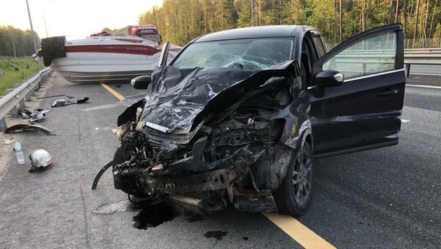 По информации УГИБДД УМВД России по Владимирской области, 36-летний водитель кроссовера Ford Kuga двигался в сторону столицы, и наехал на минивэн с полуприцепом, перевозившим яхту. Судно слетело с прицепа на дорогу. Оказалось, что ранее яхту на прицепе оставили прямо на проезжей части после другой аварии с машиной, которая ее везла.
