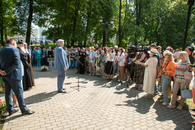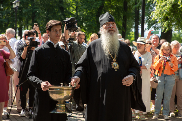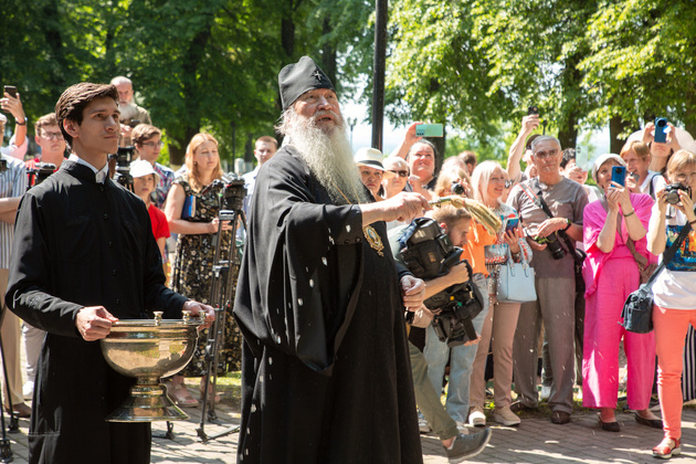 Подчеркнув вклад Пушкина в утверждение русского языка, владыка освятил монумент. Выступил хор «Распев».