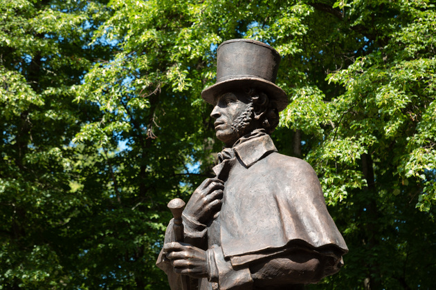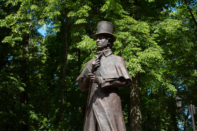 Новый скульптурный образ поэта, созданный Игорем Черноглазовым, изображает Пушкина в задумчивости шагающего по гранитному мостику.