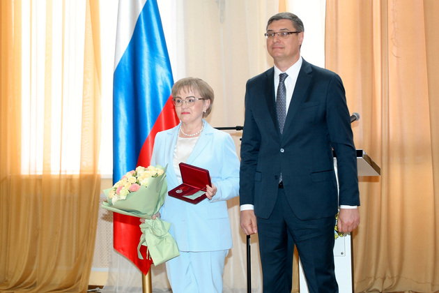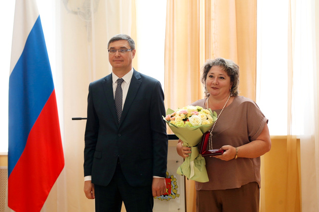 Так, медаль ордена «За заслуги перед Отечеством» II степени получила из рук губернатора председатель областной Счётной палаты Ирина Тулякова и старший мастер производства АО «Муромский приборостроительный завод» Наталья Махрова.