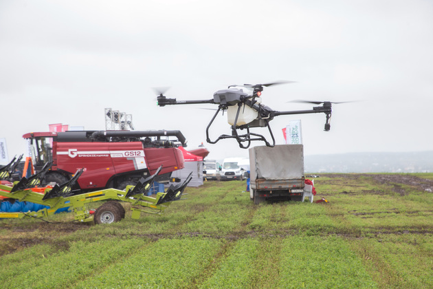 Масштабная агропромышленная выставка раскинулась на обширном пространстве в поле у села Кумино. Чего тут только не было! Селянам предлагают трактора, комбайны, навесное оборудование, удобрения, средства защиты растений. И даже - квадрокоптеры для опрыскивания посевов.
