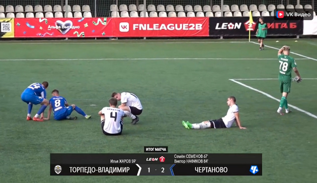 Но завершающая часть матча осталась за чертановцами. Они забили дважды. Сначала отличился Семен Семенов на 67-й минуте: после его удара даже умелый вратарь «Торпедо» не смог зафиксировать мяч в руках, и тот залетел в сетку — 1:1.